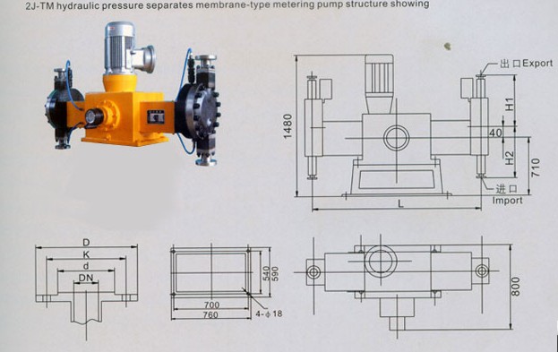 JTM型隔膜计量泵,是一种能按照工艺流程要求,具有行程可在 0~100% 范围内无级调节定量输送各种液体,且在最大行程时被输送介质的计量精度为 ±1% 的通用机械设备。适用于输送温度为-30~120℃,粘度为 0.3~800mm2/s 的不含固状颗粒的介质