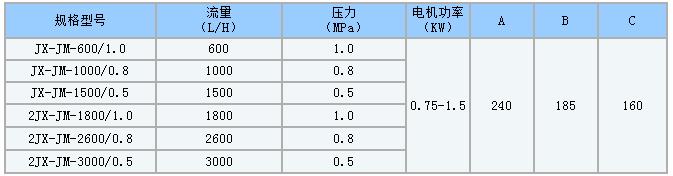最大流量:3000L/h 最高压力:1.0MPa 电机功率:1.5KW